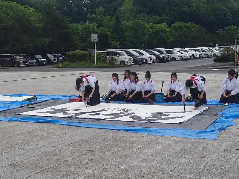 高文連をはじめ、各種展覧会への作品出品に加え、学校祭や地域の行事等で書道パフォーマンスを披露しております。
