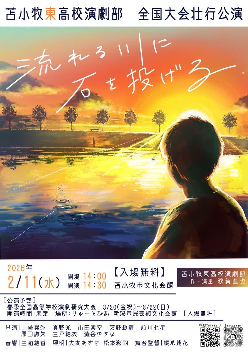 2025年11月、部員の秋葉直也くんの書いた「流れる川に石を投げる」を全道大会で上演し、優秀賞をいただき、望外にも2026年3月