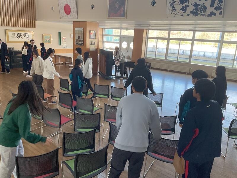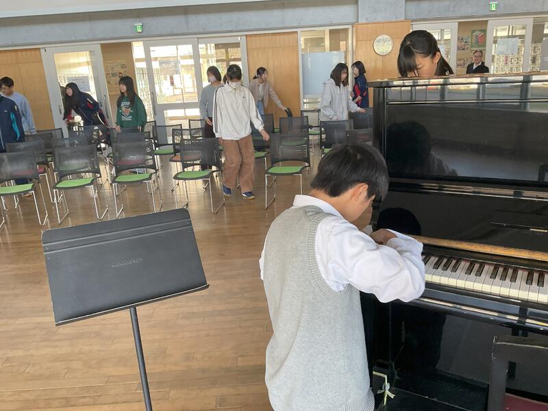 まずは会場準備のお手伝い。生徒ホールがいつもとは違った雰囲気に。